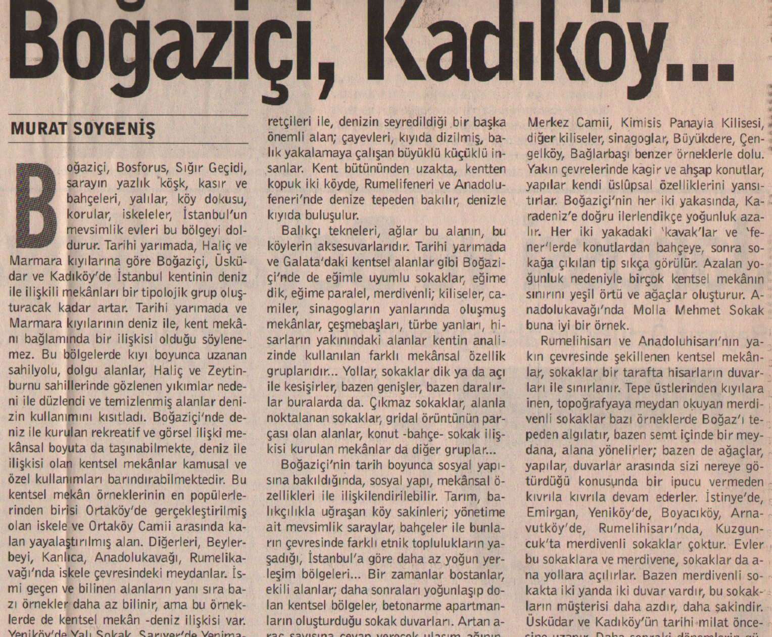 Kaynak: Soygeniş, M., “Boğaziçi, Kadıköy…”, Radikal İki, Sayı 194, s.7, 25 Haziran 2000.