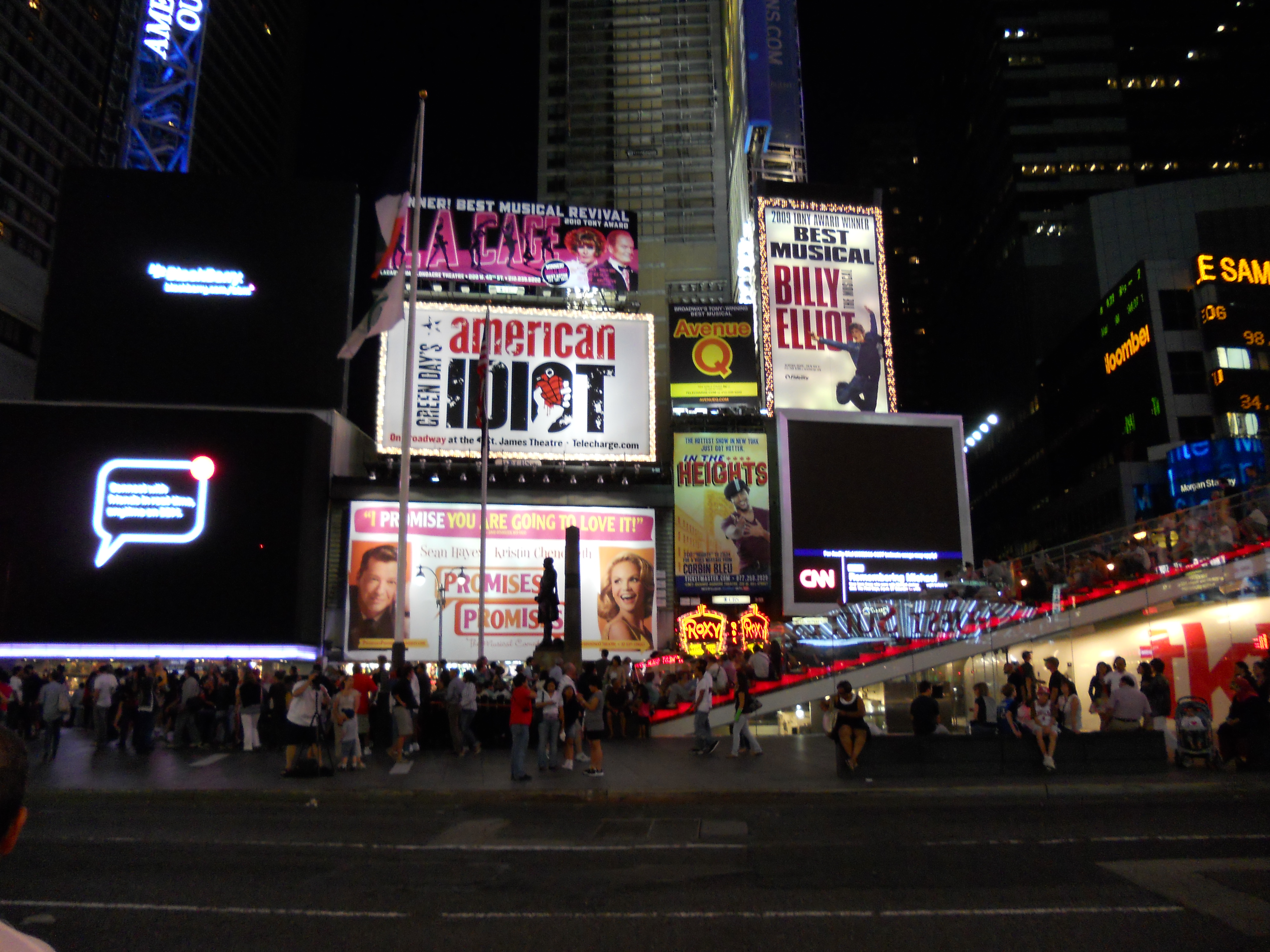 New York’ta 42. Cadde’de büro binaları, gökdelenler ve cadde kotundaki ticari mekanlar, bu işlek ve geniş caddenin gündüz kullanım alanlarıdır. Geceleri boşalan gökdelenlerden geriye, zemine yakın katlardaki ticari aktiviteler, kaldırımlardaki işporta tezgahları ve kaldırım göstericileri kalır. Cadde geç saatlere kadar müşterilerini çeker; kentin çok bilinen ve ziyaret edilen ticari kanyonudur. Araç ve yaya trafiği Times Meydanı’nda iyice artar. Bu meydanda insan gökdelenlerle çevrili kentsel mekanda, elektronik reklam panoları arasında kaybolur adeta. Günün her saati kaldırımlarda kalabalıktan zor yürünür, araç gürültüleri ve klakson seslerine kimse aldırmaz. Ambulans ve polis araçlarının sirenleri sık sık bu meydanda gezenlerin kulaklarında çınlar. Kaldırım satıcılarını ve dans gösterisi yapanları seyreden, halka olmuş kalabalıkla yapı duvarı arasındaki dar aralıktan sıkışarak geçilir. Bu meydan, Broadway’le 42. Cadde’nin kesiştiği alandır. Her ikisinden de özellikler burada yer alır. Kendi deyişleriyle “New Yorker” lar, bizim deyişimizle New Yorklular burada müzikallere, “Cats”e, “Le Miserables” a bilet alırlar, bu müzikalleri izlerler. Kültürün, sanatın, işin, ticaretin buluştuğu bu mekan, Sultanahmet Meydanı, Beyazıt Meydanı gibi çok işlevli bir kentsel alandır.