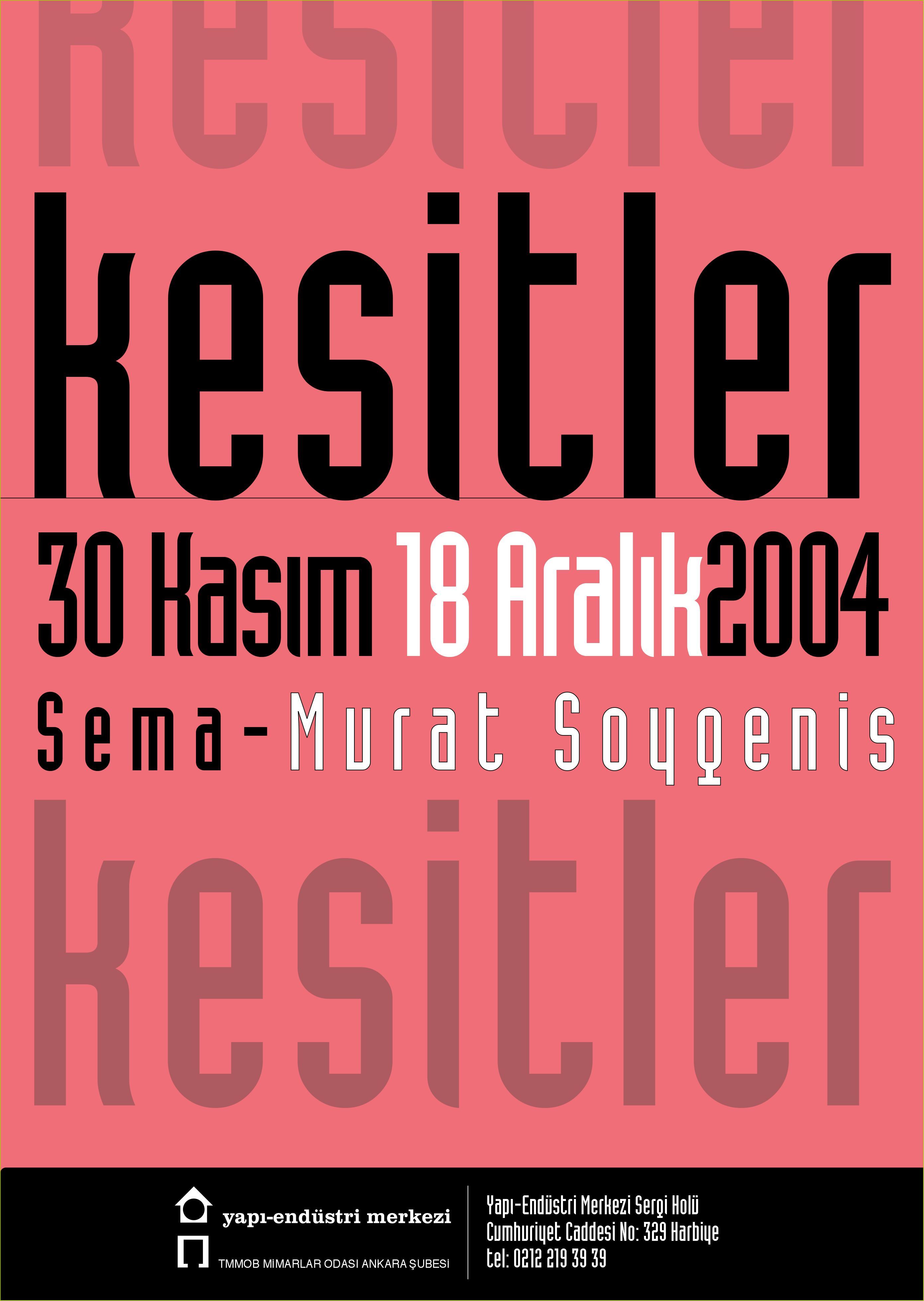 Mimar Sema ve Murat Soygeniş’in endüstri yapıları, konutlar, kentsel tasarım projeleri, mobilya tasarım örneklerini bulunduran “Kesitler 1991-2004” Sergisi, 30 Kasım-18 Aralık 2004 tarihleri arasında Yapı-Endüstri Merkezi sergi holünde sanatseverlerle buluşuyor.