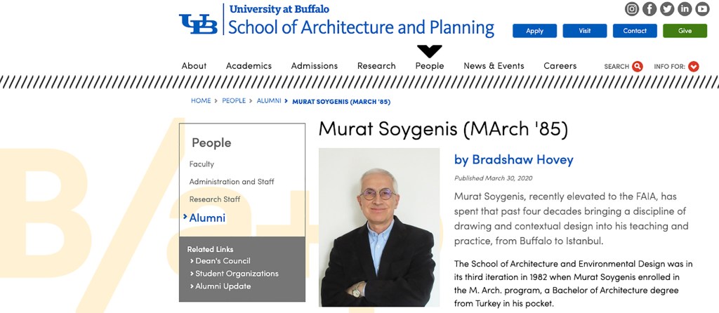 “Murat Soygenis, recently elevated to the FAIA, has spent that past four decades bringing a discipline of drawing and contextual design into his teaching and practice, from Buffalo to Istanbul…”