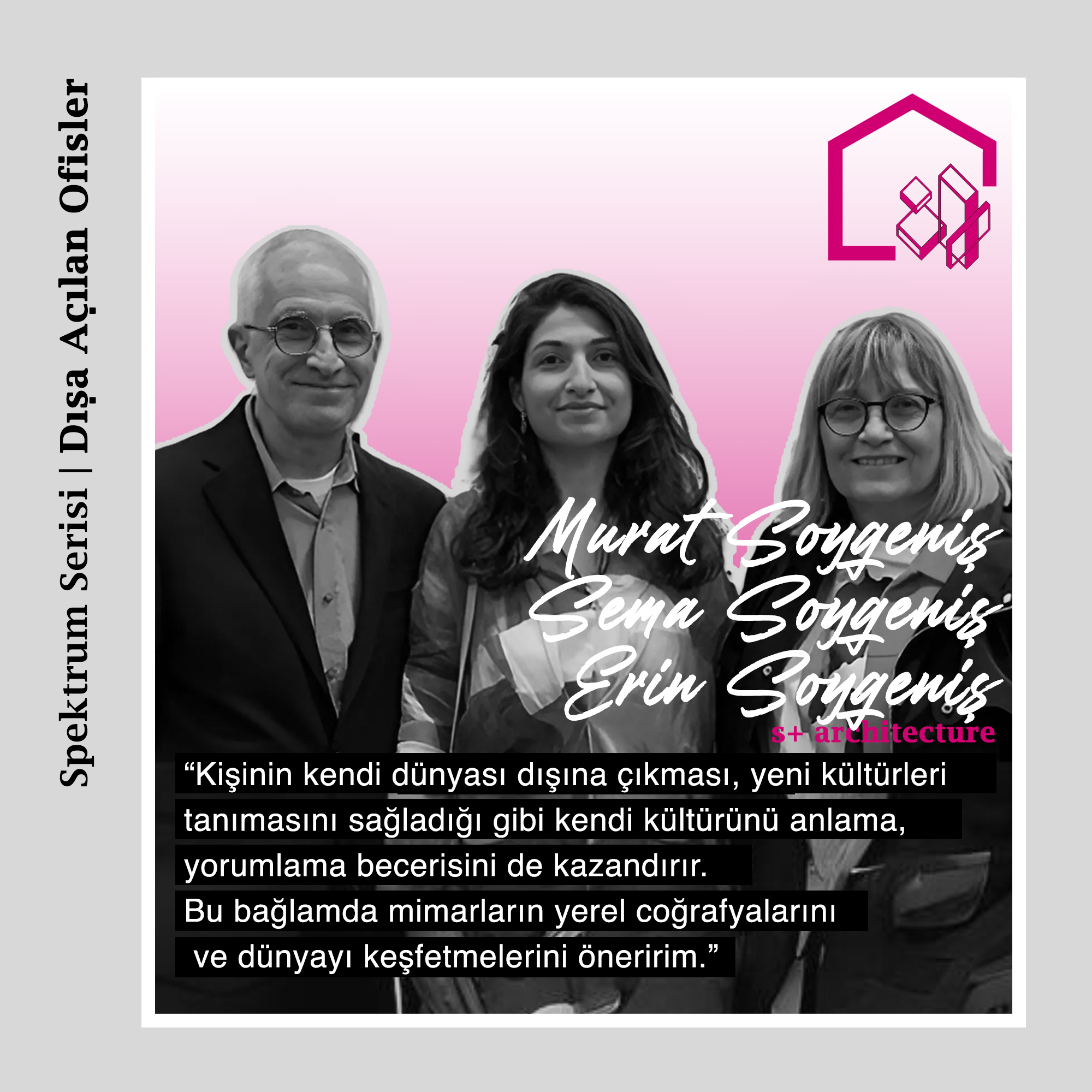 Yapı Kataloğu’nun, Mimarlar Rehberi üye ofisleri ile mimarlık sektöründeki duruşlarının çeşitliliği üzerinden söyleşiler yaptığı serisi Spektrum’un konukları Murat Soygeniş, Sema Soygeniş ve Erin Soygeniş oldular. İstanbul ve New York’ta konumlanan mimarlarla “Kuşaktan Kuşağa Mimarlık” konulu bir söyleşi gerçekleşti.